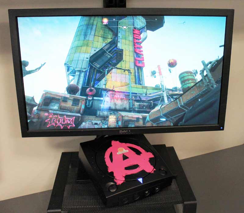 Bethesda anuncia el sorteo de una Dreamcast con temática de la segunda entrega de Rage. La consola es negra y tiene la impresión del símbolo del juego ( la A del nombre) con estilo graffiti.